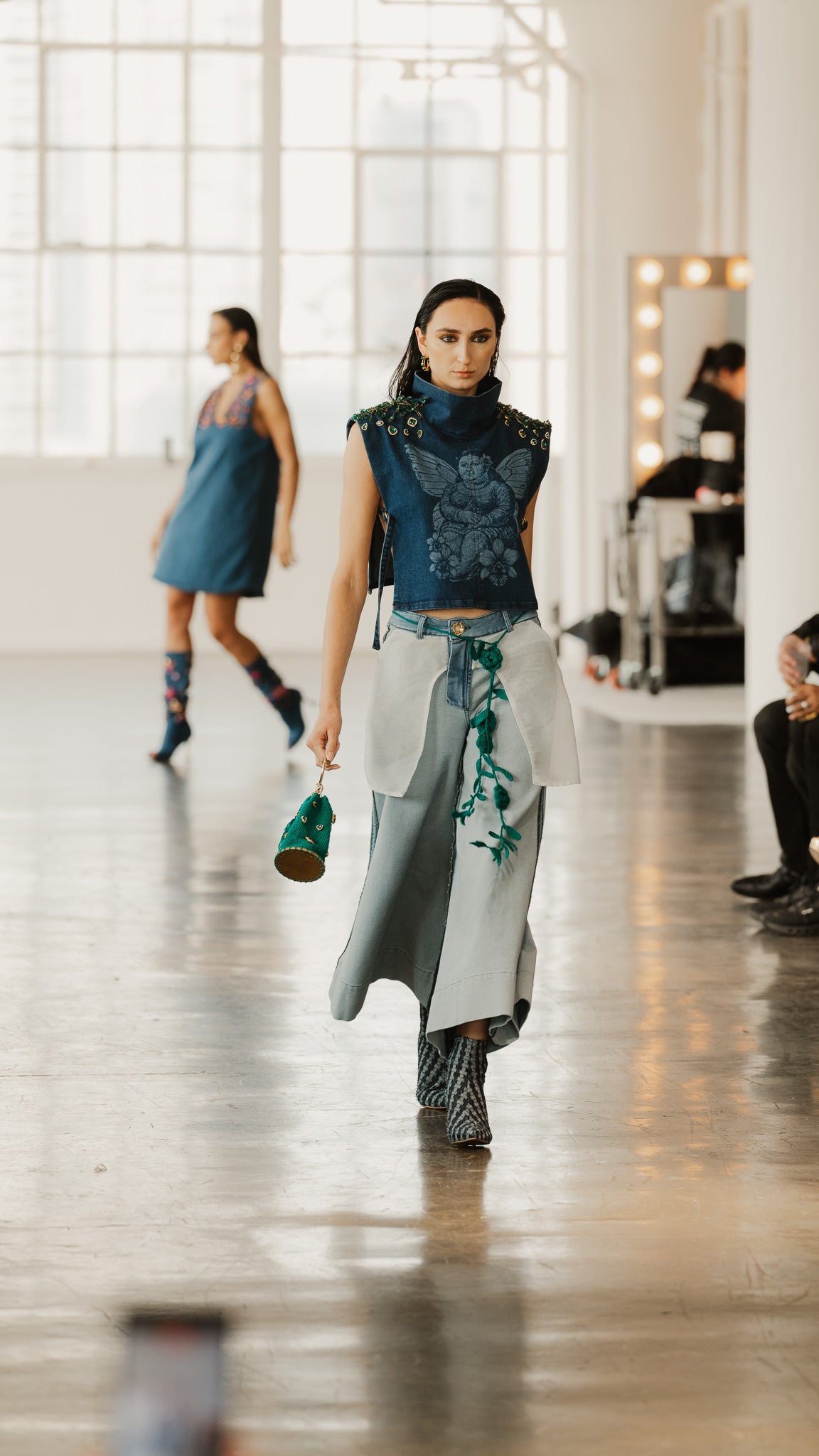 Ref. Jeans Recto. Olas de Nuqui. Composición demin y organza
