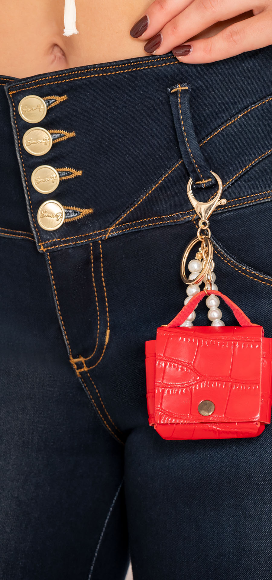 Jeans bota campana. Pretina alta control abdomen. Tono azul oscuro