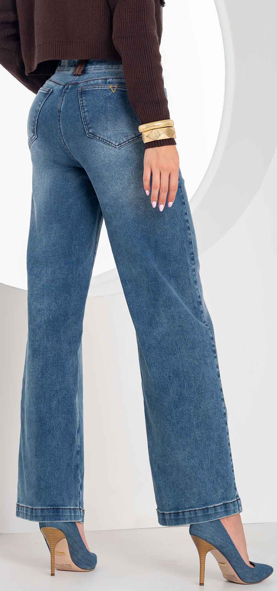 Ref. 700-1774 Jeans palazzo. Tiro alto 1 botón. azul medio