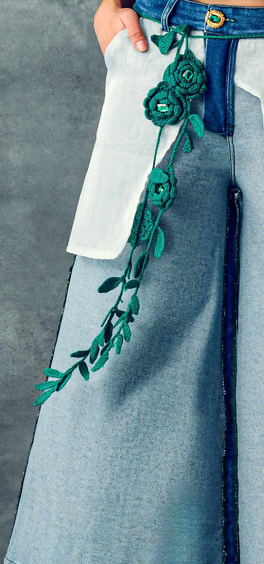 Finalmente, los botines tejidos en tiras de denim reciclado completan el relato, conectando