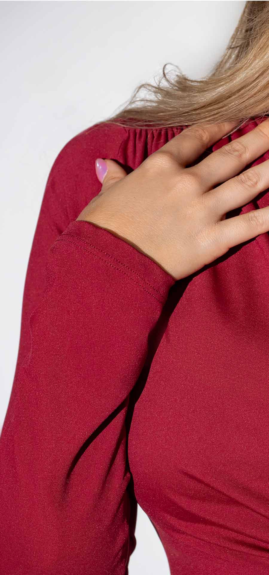 Ref. Y-111 Blusa ajustada. Manga larga. Tono vino tinto